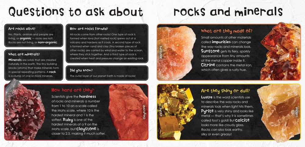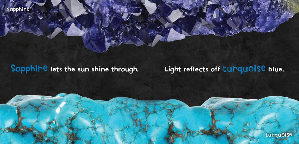 A rainbow of rocks -- from red to violet and beyond! Eye-popping close-up photos of real, vibrant rocks and minerals in a rainbow of colors are brought to life by lyrical, rhyming text about the many facets of geology. Includes educational notes perfect for STEM learning.