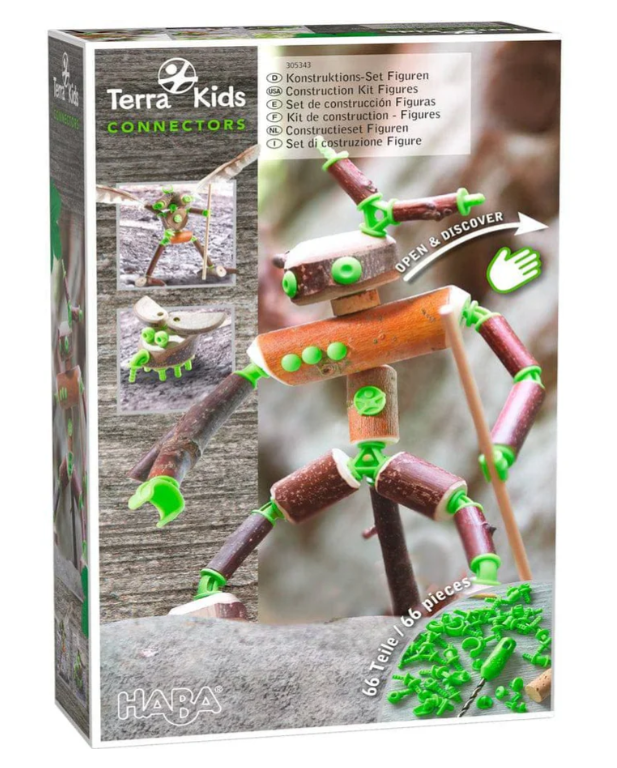 Forage, saw, drill, join. With Terra Kids Connectors, children can construct a variety of interesting figures. The principle is simple and ingenious: gather wood outdoors to work with at home. Drill holes, insert connectors and connect to another piece of wood. The figures gradually come to life. The instructions contain many suggestions for other projects. Wooden twigs/branches are not included.