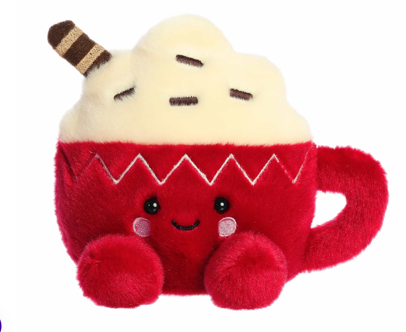 Cassia Hot Cocoa is a plush red mug filled with a swirl of creamy whipped topping, chocolate sprinkles, and a striped cookie straw for extra charm. With a rounded handle, soft texture, and rosy cheeks, she’s a huggable cup of calm holiday joy.