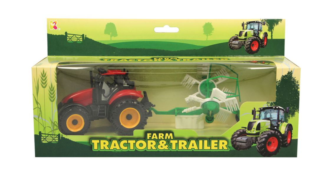Highly detailed tractor and detachable trailer which freewheels for added fun! Perfect for the young tractor and farm fanatic.