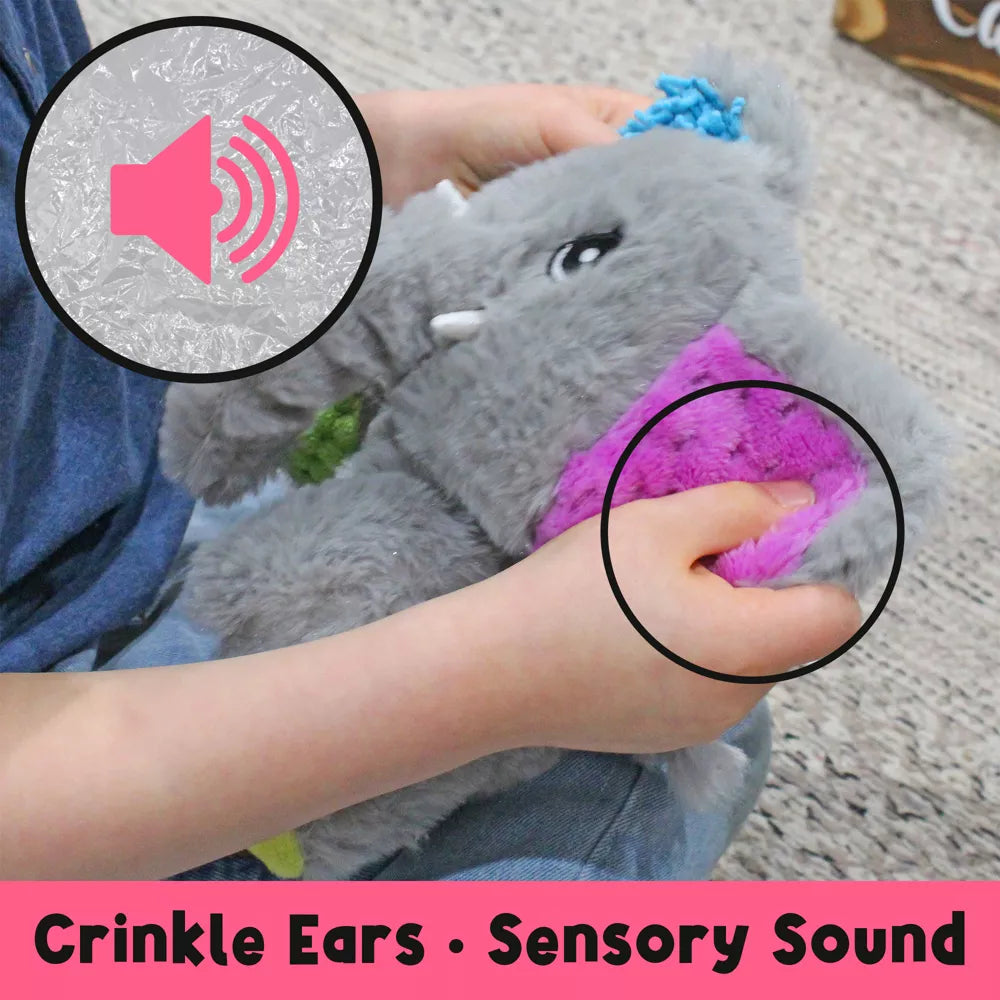Say Hello to Ellie the mini Sensory Elephant! Meet Ellie, the cutest little plushie elephant around! She’s here to bring all the fun with her soft, snuggly fur and a rainbow of calming colors. Give her a squeeze, and you’ll find crinkly ears that make the happiest little sounds, perfect for keeping curious kiddos entertained!