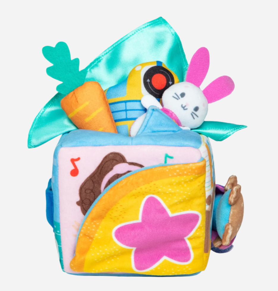 Lift the flap as babies enjoy the excitement of discovery play, pulling out surprises from the box and enhancing their grasp and fine motor skills by placing them in play environments.