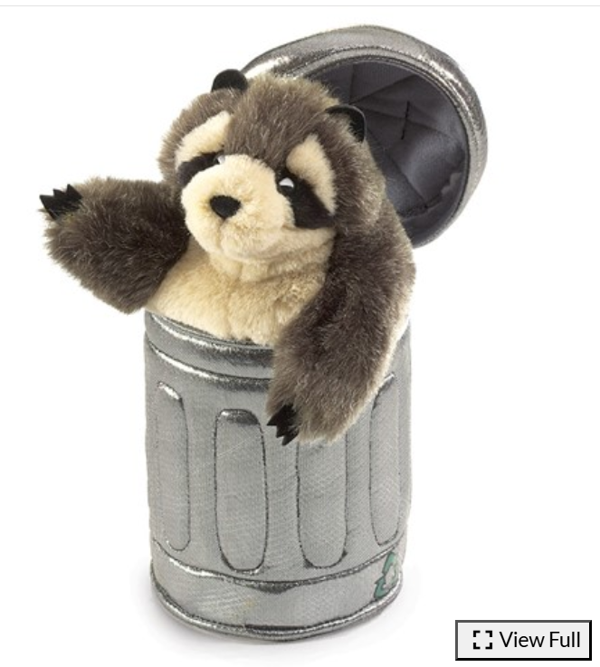 Who's that masked creature making all that racket? The raccoons must be looting the trash again. Even if he is spending too much time in the can, you won't mind when you see this adorable creature peeking out from under the lid. Little Raccoon says, please recycle!