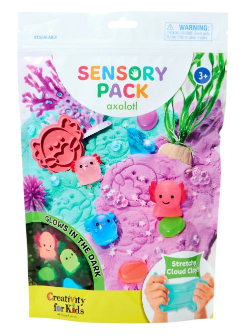· Big fun in a small pack! Sensory play packs feature a resealable storage bag for on-the-go pretend play with your axolotl toys
