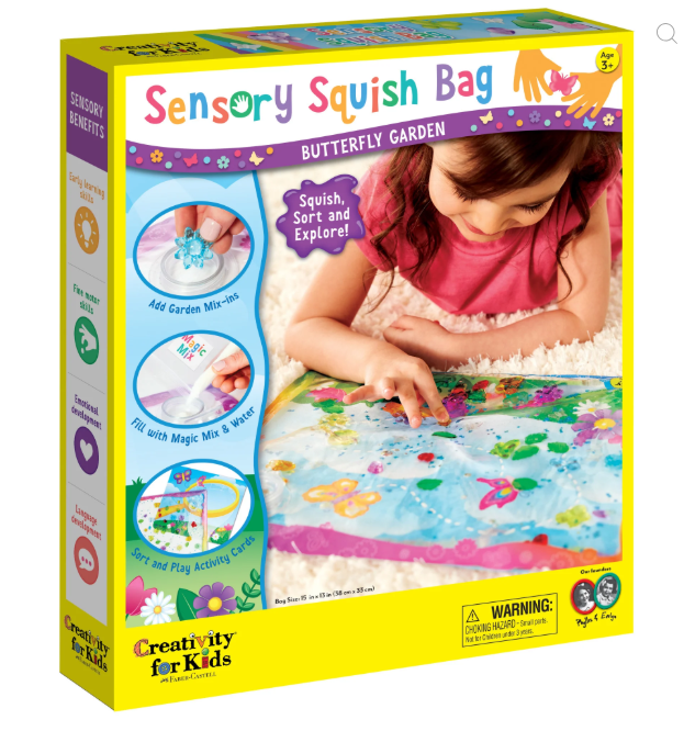 Capture your toddler's attention and stimulate their senses with the Sensory Squish Bag Butterfly Garden!