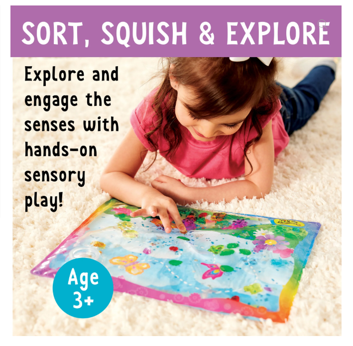 Preschool age kids will squish, sort and explore as they engage in imaginative play with garden flowers and characters and 2 double-sided garden-themed activity cards. Simple prompts are printed on the cards to guide the adventure. Complete cognitive tasks and play "I Spy" and match and sort games.