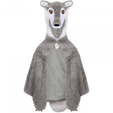 The perfect compliment to the Little Red Riding Hood costume is our Wolf Cape. This cape features a realistic one-piece wolf face, white fur around the neck, a white tail, and attached paws. Made with an elastic loop inside the paws to easily allow your child to grip the paws even if their arms are not long enough.